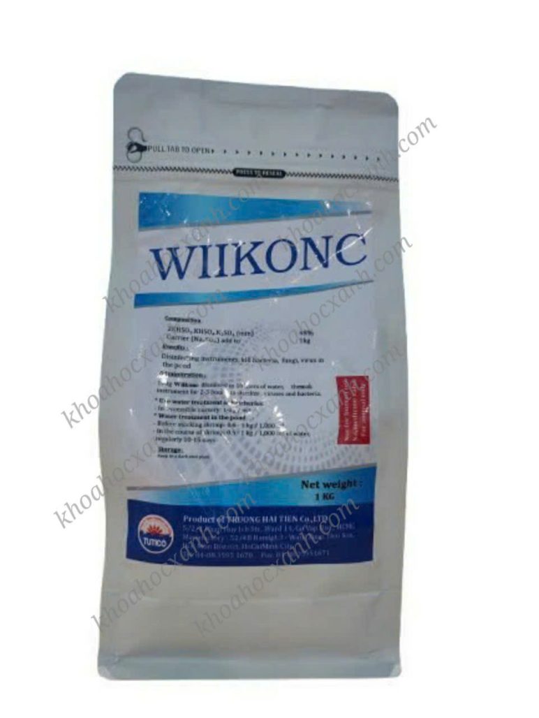 WIIKONC là một chất diệt khuẩn phổ rộng, có thành phần chính là Potassium monopersulfate, giúp tiêu diệt vi khuẩn, virus, nấm và các tác nhân gây hại .
