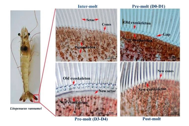 Hình ảnh thay đổi của lớp vỏ tôm trong cá giai đoạn lột xác