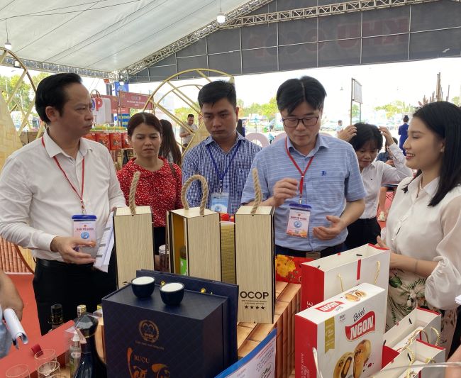 Các thành viên Ban tổ chức chấm giải các sản phẩm OCOP tham gia Festival