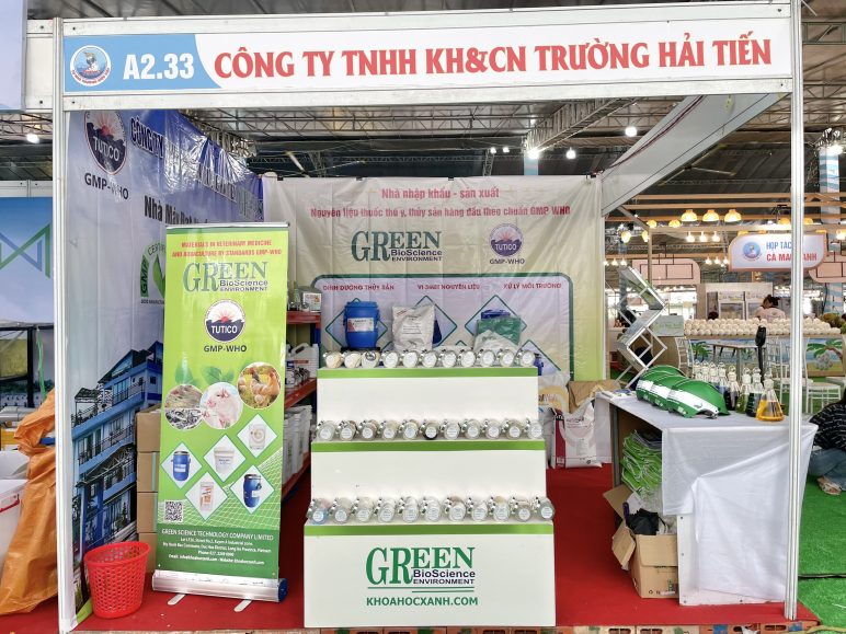 Tham gia sự kiện lần này, Công ty TNHH KTCN Khoa Học Xanh mang đến đa dạng mẫu mã hàng hóa nhằm giới thiệu và quảng bá như: vi sinh và enzyme, dinh dưỡng thủy sản, hóa chất xử lý nước, các loại khoáng, kháng sinh… bao gồm cả hàng nguyên liệu và hàng thành phẩm.